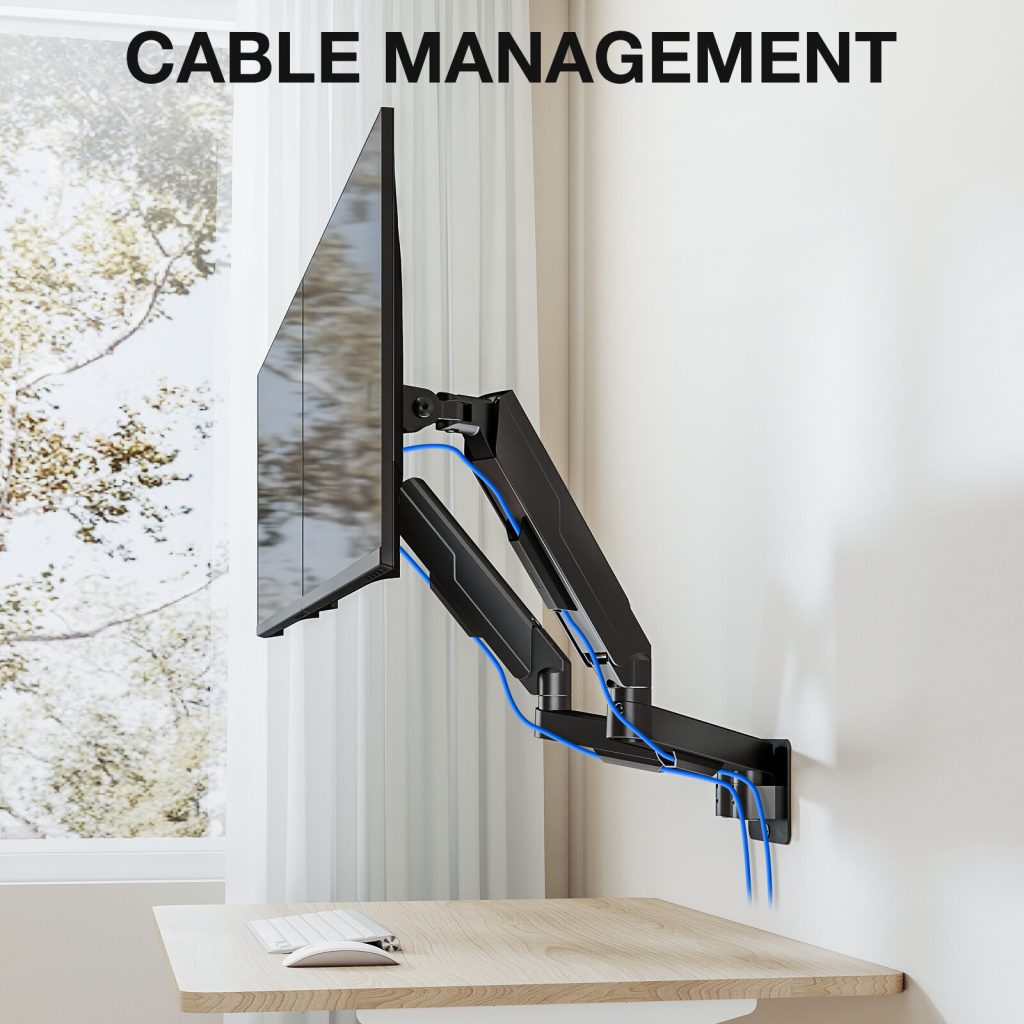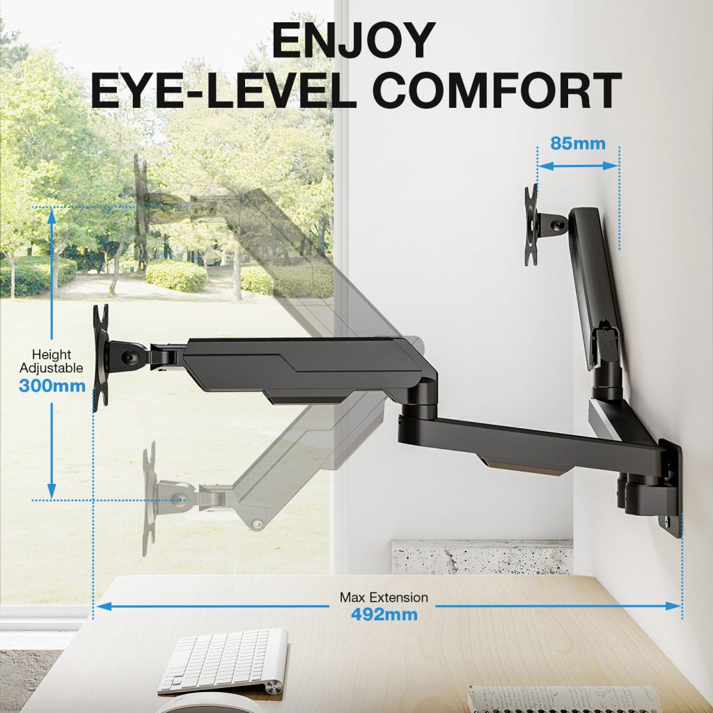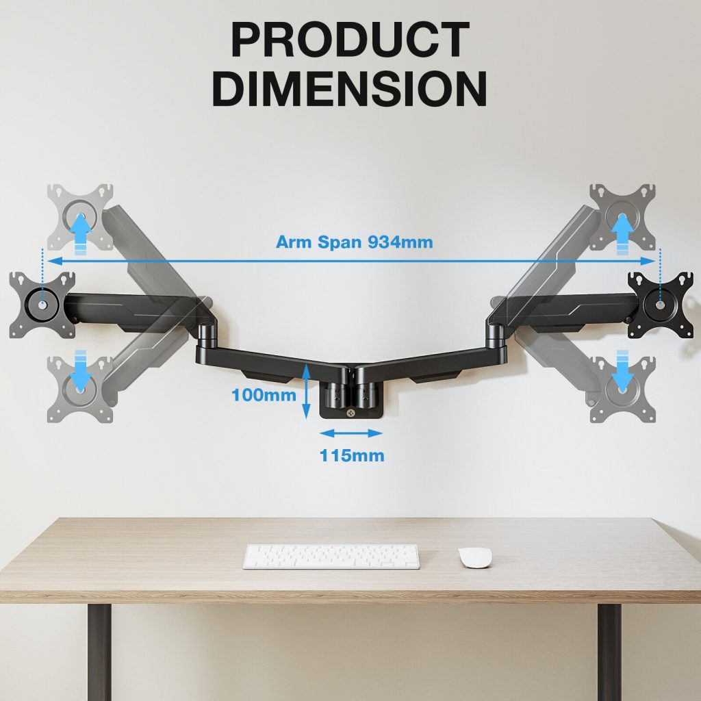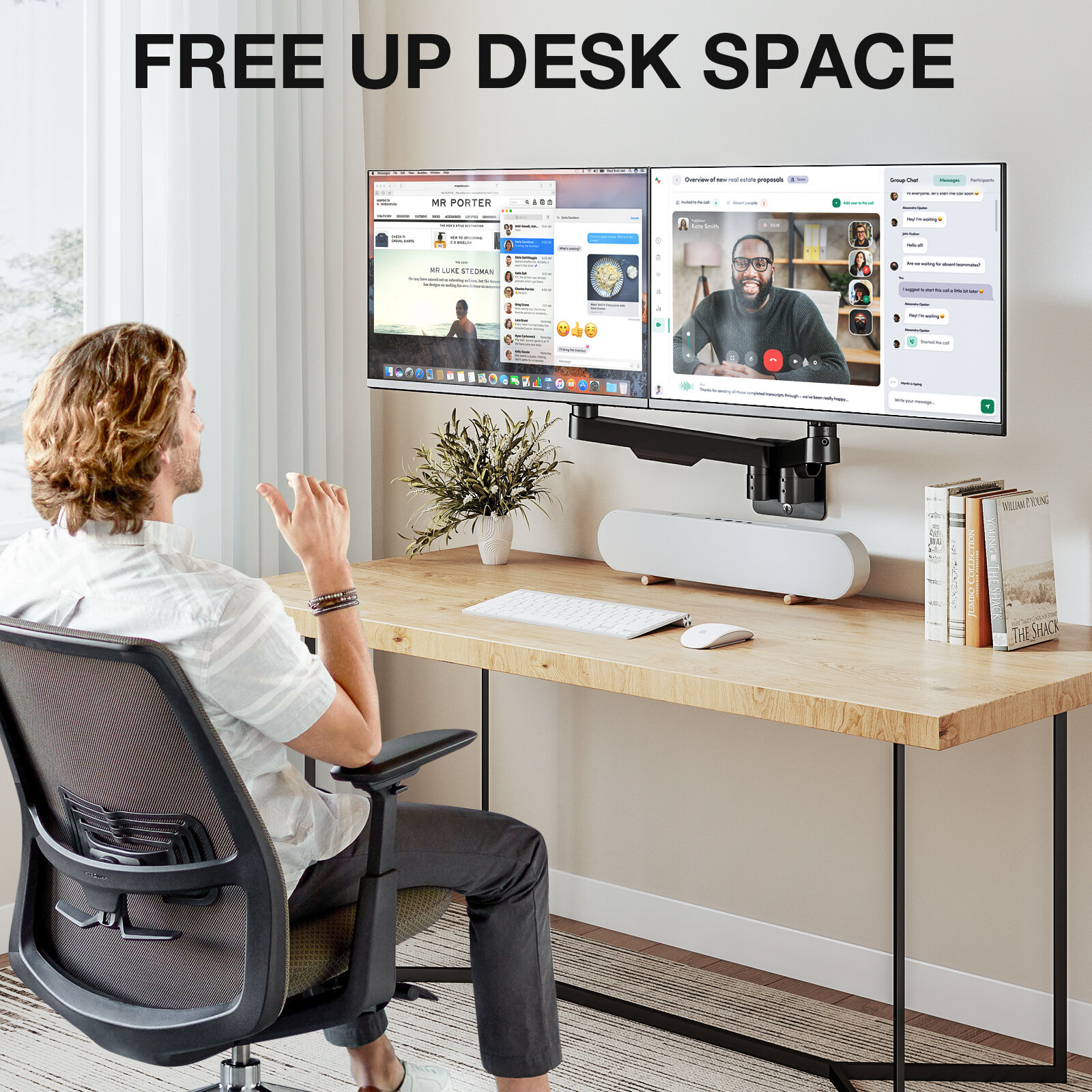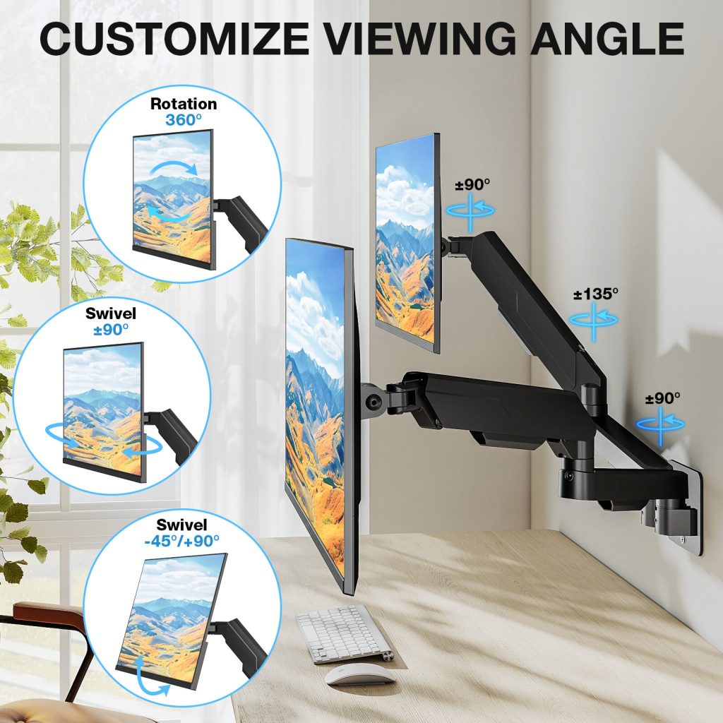 [Full-motion Dual Monitor Mount] The articulated monitor arm is easy to adjust, rotate, tilt and rotate, allowing you to work in a more ergonomic correct posture to reduce neck and eye fatigue.