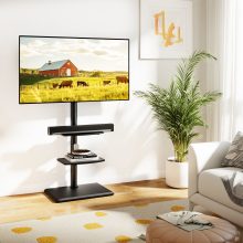 [ ADJUSTABLE DESIGN STAND ]- Allows -90° to +90° swivel range to help you find the optimal viewing angle for all types of tv screen panels, universal tv stand swivels so you can turn the TV screen to watch in different areas of the living / dining room you have it in, and enjoy your viewing experience to the fullest both in the living room and the dining room. Also easy to adjust tall tv stand to configure different heights, to keep your tv always at the optimum height.