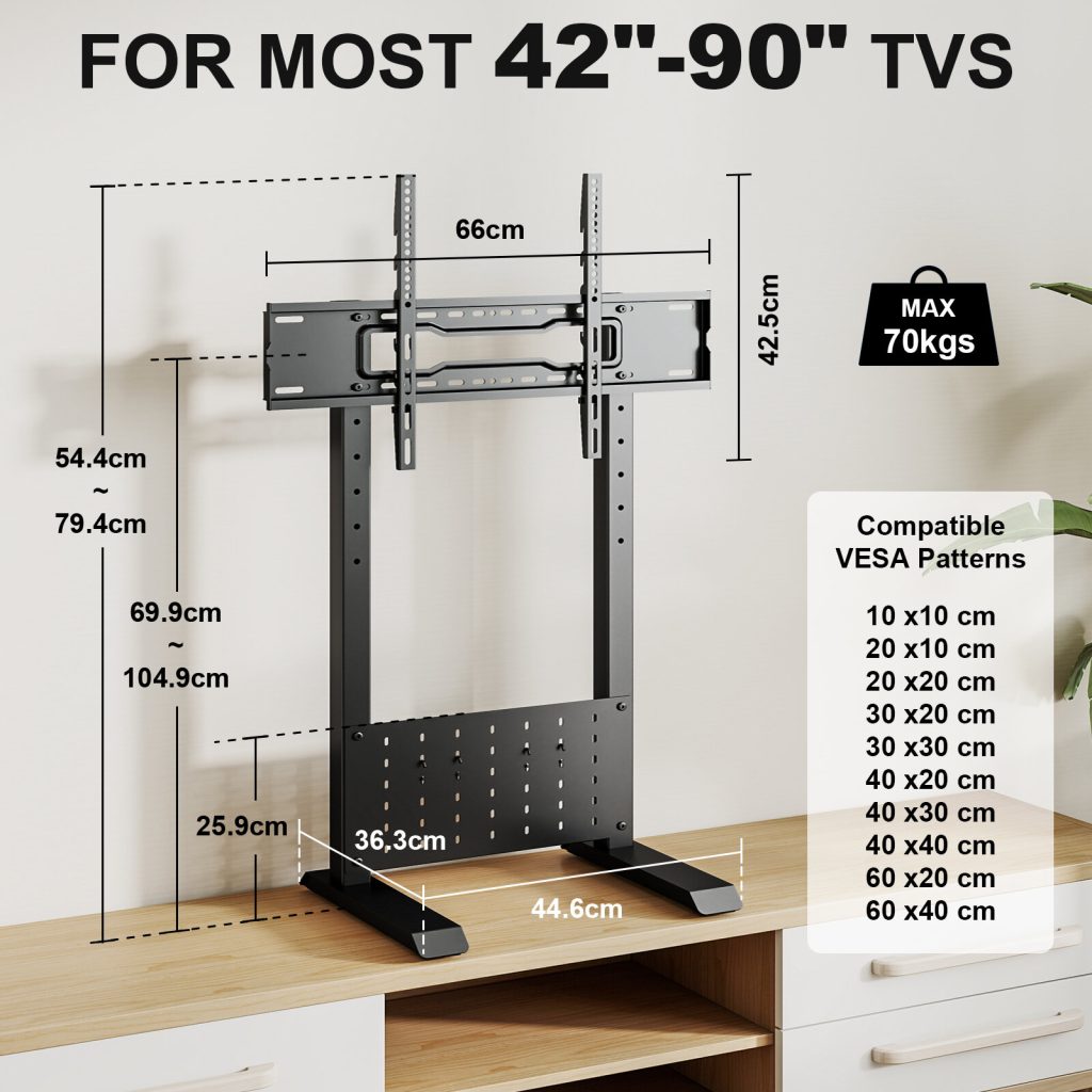 【Universal TV Stand for 42″-90″ TVs】This tabletop TV stand is compatible with most 42″–90″ flat-panel TVs, supporting up to 154 lbs (70 kg) and VESA patterns up to 600×400 mm. Please confirm your TV’s VESA size before purchase.